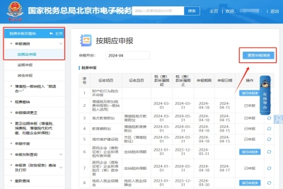 二、稅費(fèi)申報(bào)及繳納—申報(bào)清冊(cè)—按期應(yīng)申報(bào)頁(yè)面在右上角點(diǎn)擊“重置申報(bào)清冊(cè)”,然后帶出新的報(bào)表后請(qǐng)?jiān)偬顚?xiě)申報(bào)即可。